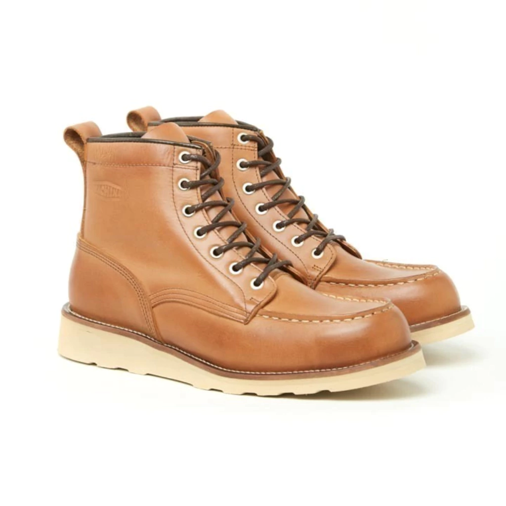 O design da bota Moc Toe Machina apresenta uma ponteira moc toe (ou bico de mocassim), conferindo um toque de estilo e personalidade à bota. Os detalhes artesanais e as costuras resistentes completam o visual clássico e atemporal.