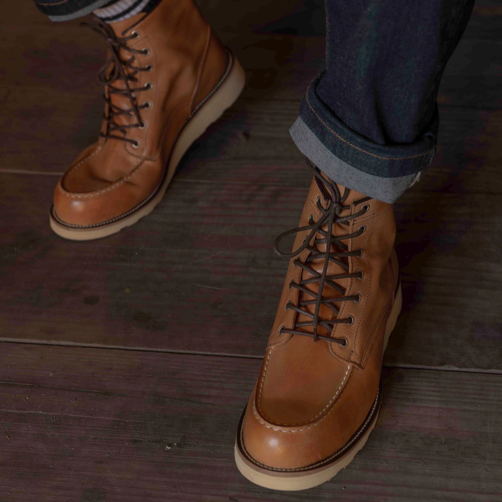O couro utilizado na confecção da nossa bota Moc Toe é cuidadosamente selecionado, proporcionando uma aparência sofisticada e resistência excepcional. Suas características naturais, como marcas sutis e variações de tons, apenas realçam a autenticidade do material.